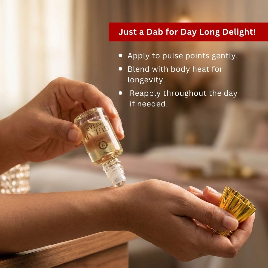 Ever imagined yourself lying in a bed of roses, their sweet scent enveloping you in a cocoon of love and romance. Tatha rose attar offers just that experience. Crafted from the essence of pure roses, our gulab perfume is like a delicate whisper of petals, each telling a story of timeliness beauty. Infused with the finest natural ingredients, Tatha Gulab Itra original graces your senses with a touch of romance and elevates your daily rituals, wrapping you in a symphony of elegance and tranquillity. It is suitable for both men and women.